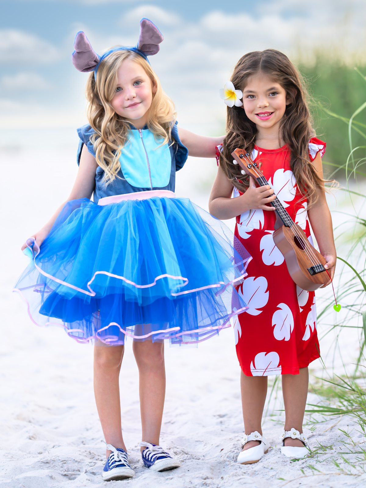 • The long-awaited Alien Adventure Tutu Dress costume is here for your little one who's ready for intergalactic fun! She’ll stand out at Halloween parties, costume events, and themed celebrations in this adorable tutu dress with Stitch-inspired ears. Complete with a cute blue tail and playful details to make her moments even more memorable. You're almost there! Add it to your cart now!