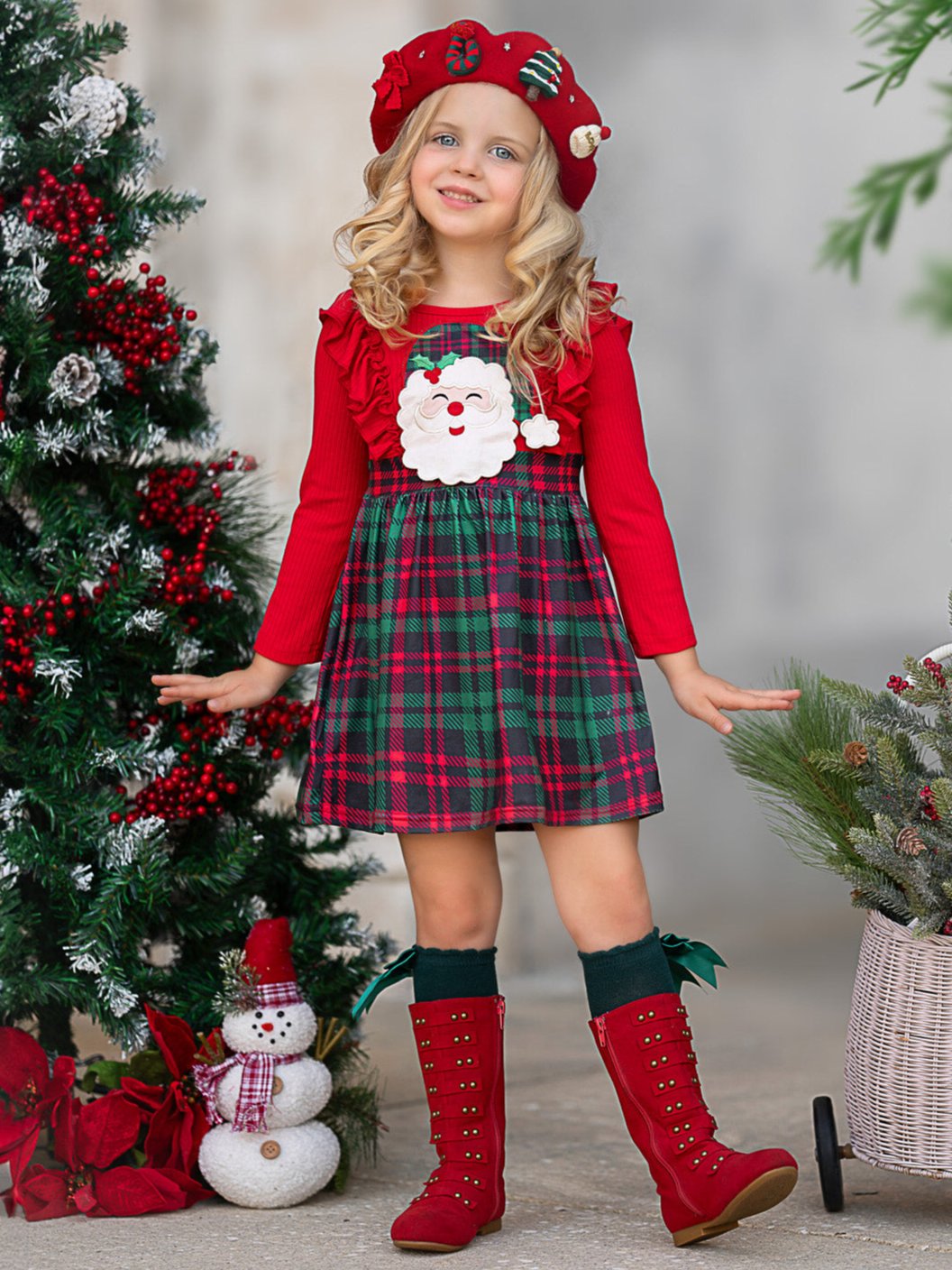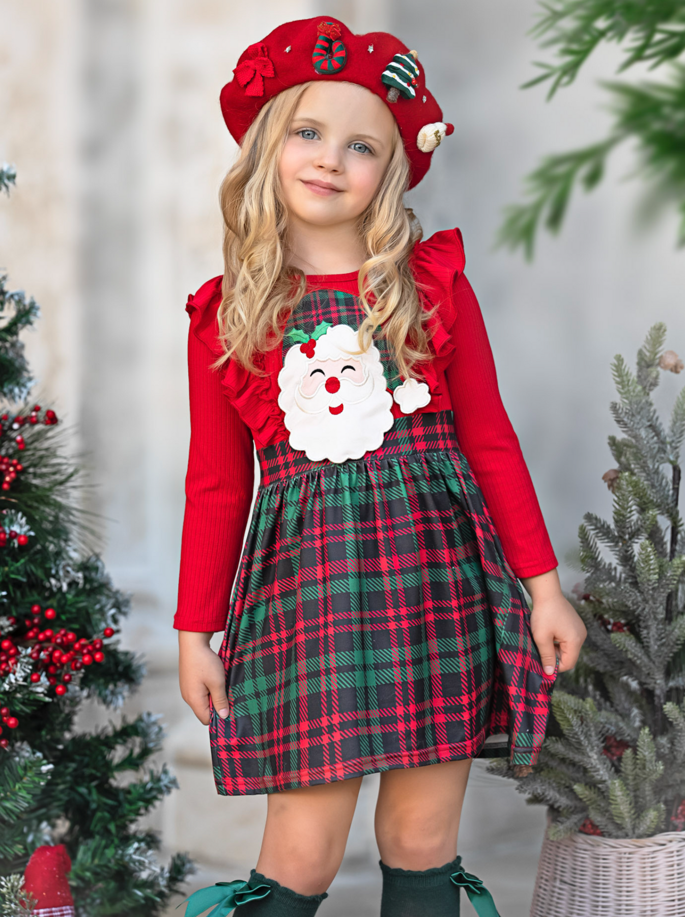 - Embrace the festive spirit with this delightful Santa Plaid Christmas Dress, designed to make your little girl shine during the holiday season.