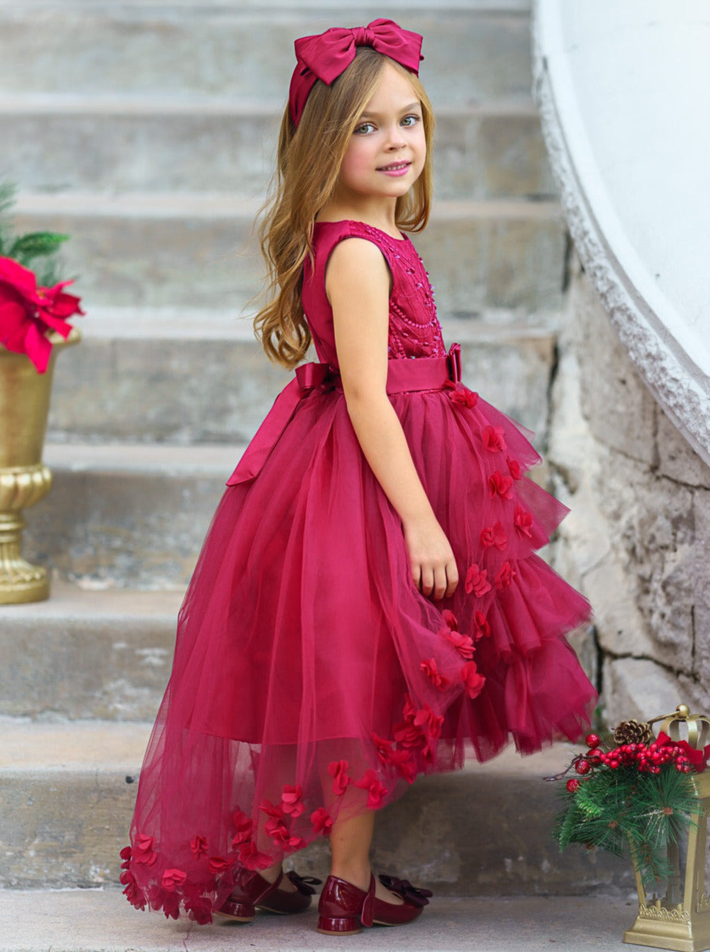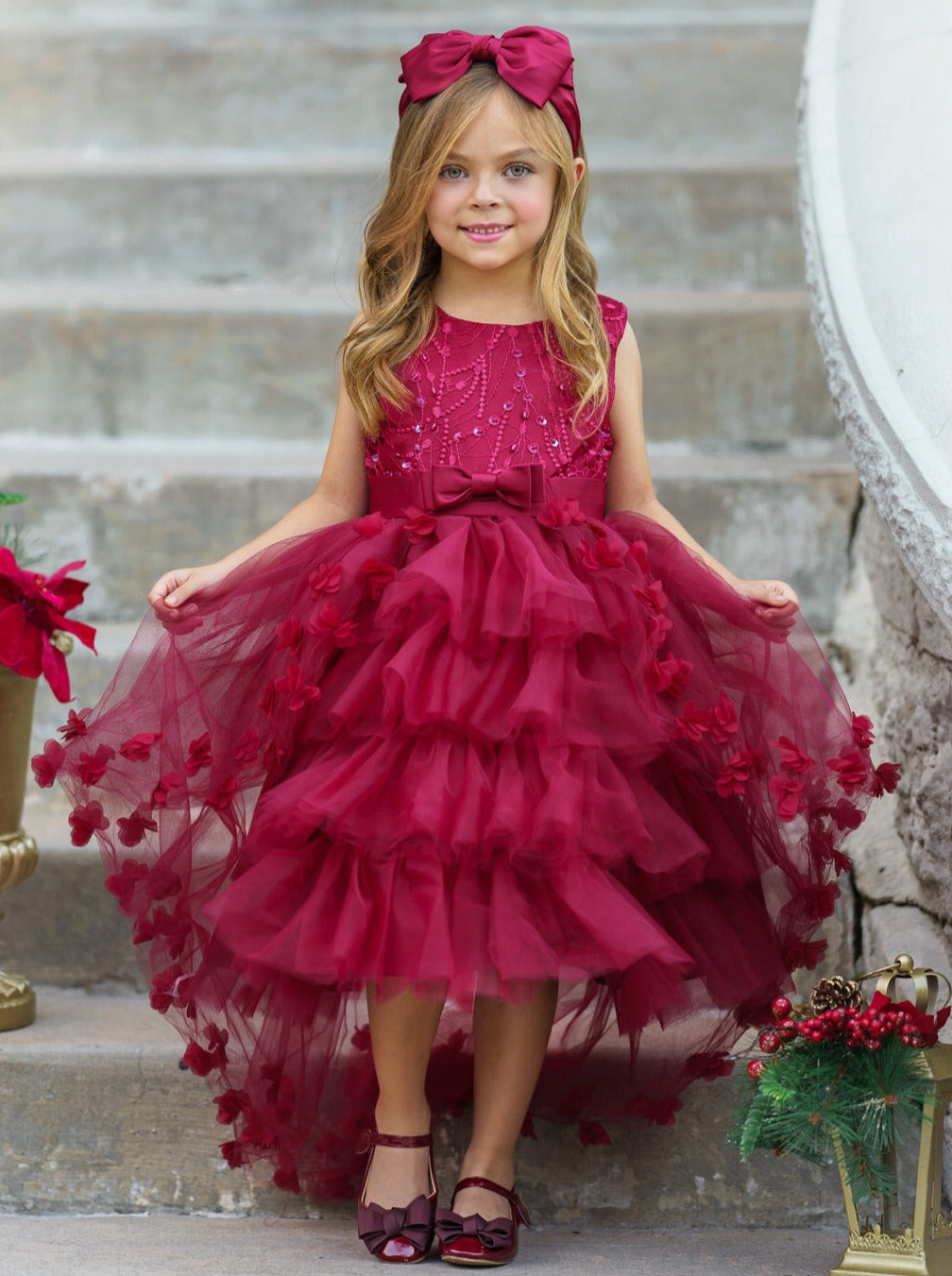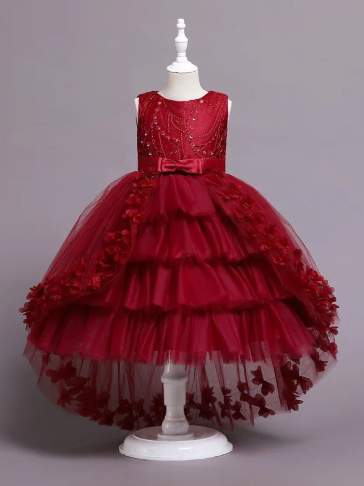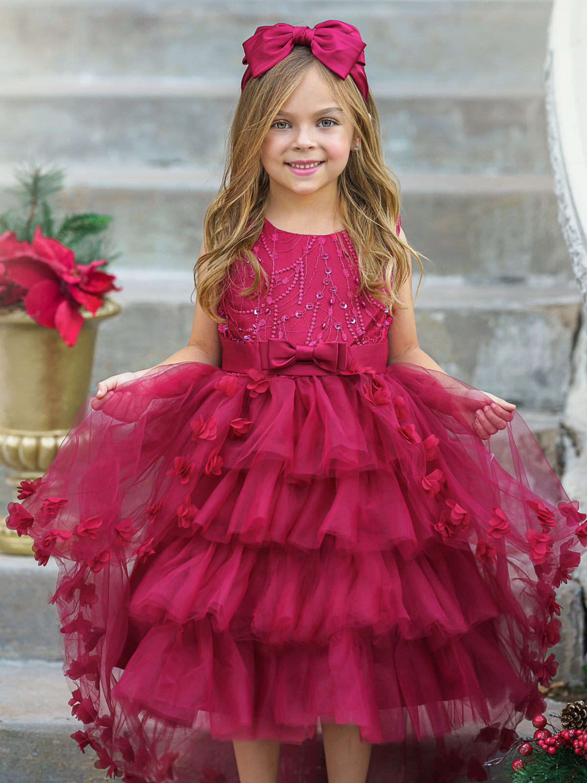 Made especially for princesses, our layered tulle dress is all fluffed up with elegant details. Intricate beadwork on the bodice, a layered skirt, and floral appliqués make this piece truly enchanting. Dreamy like a fairytale!