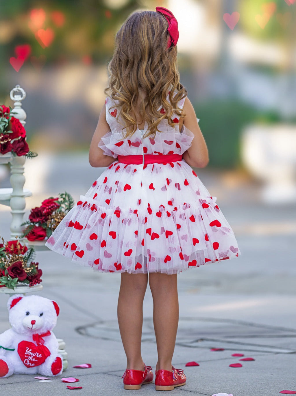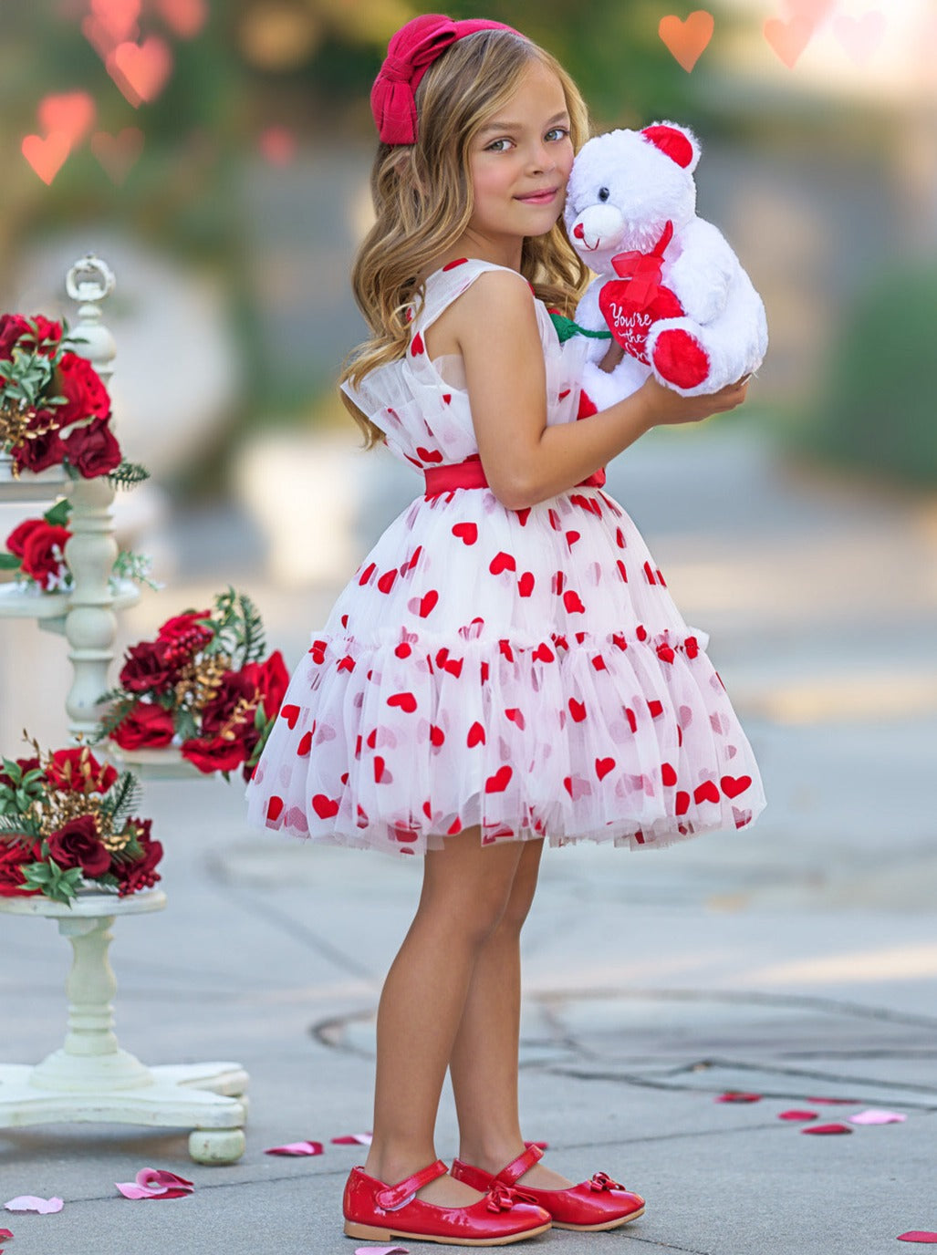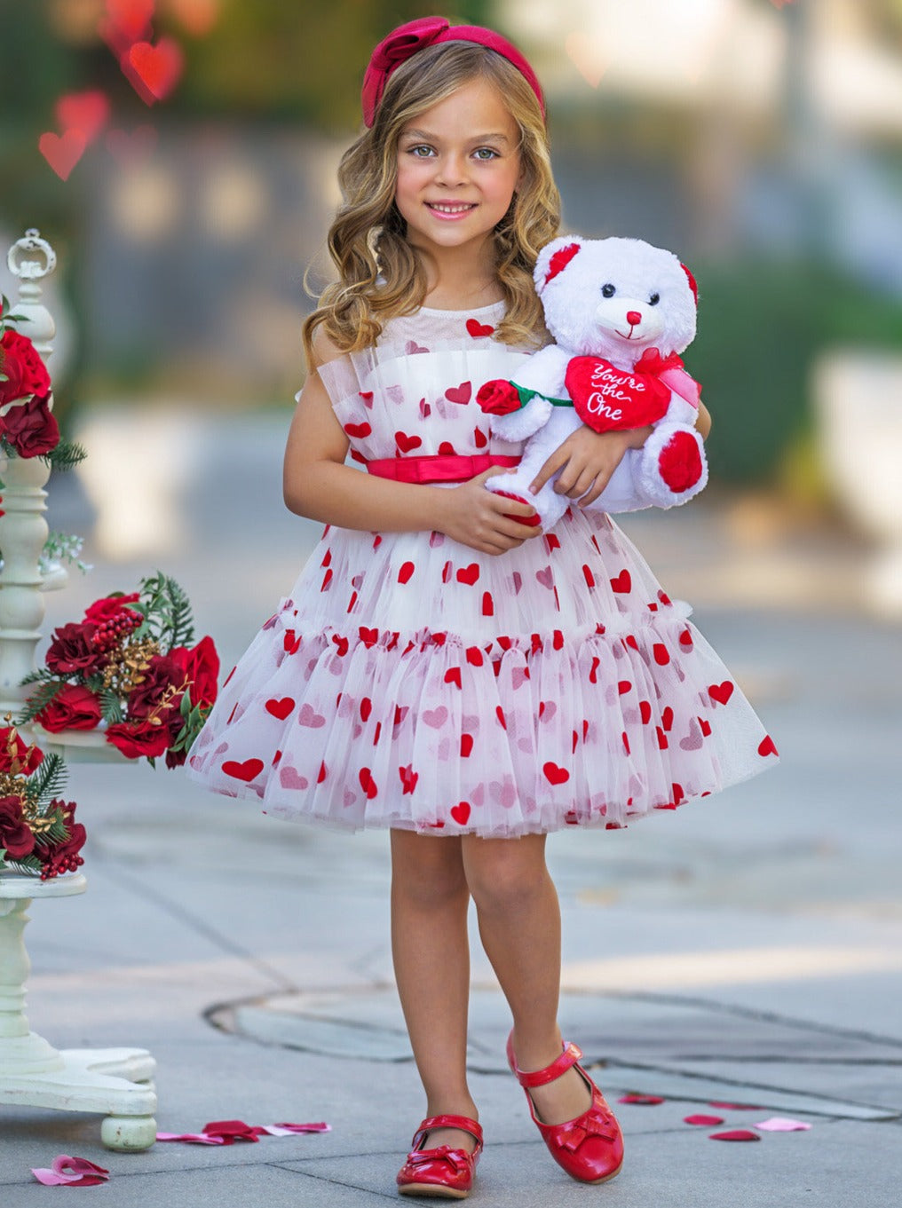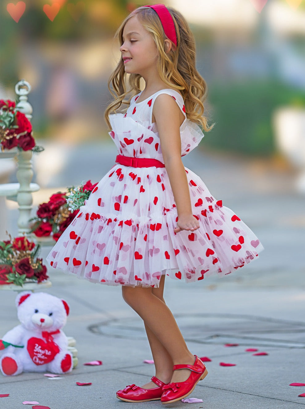 She's going to have a happily ever after moment in this felt heart tulle tutu dress. Its gathered tulle bodice, all-over hearts, and belted detail make this the ultimate Valentine's frock for your little sweetheart.