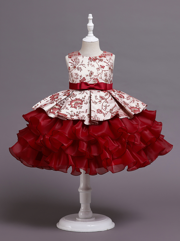 - Give your princess the holiday dress she deserves! Covered in florals, satin, ruffled tulle, and topped with a large red bow. OMG! It's the cutest thing she'll wear all winter.