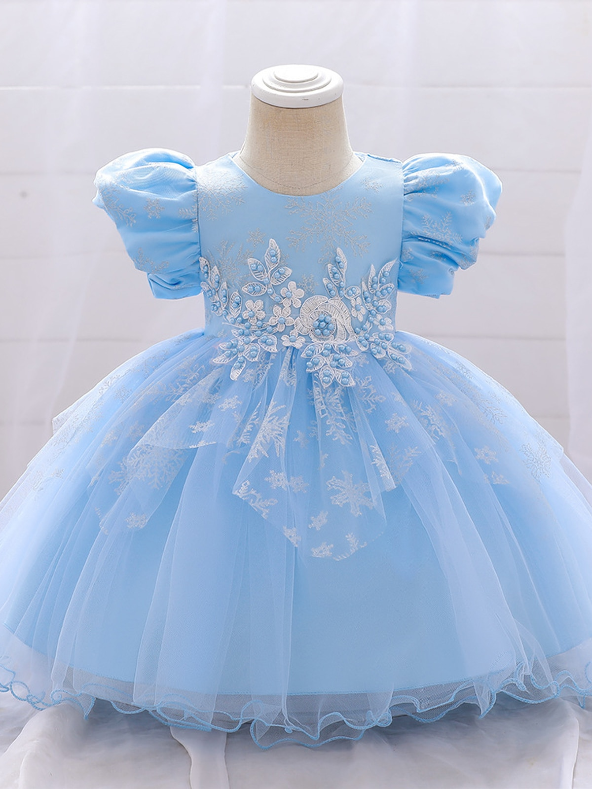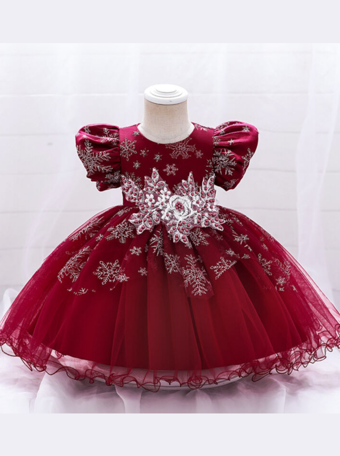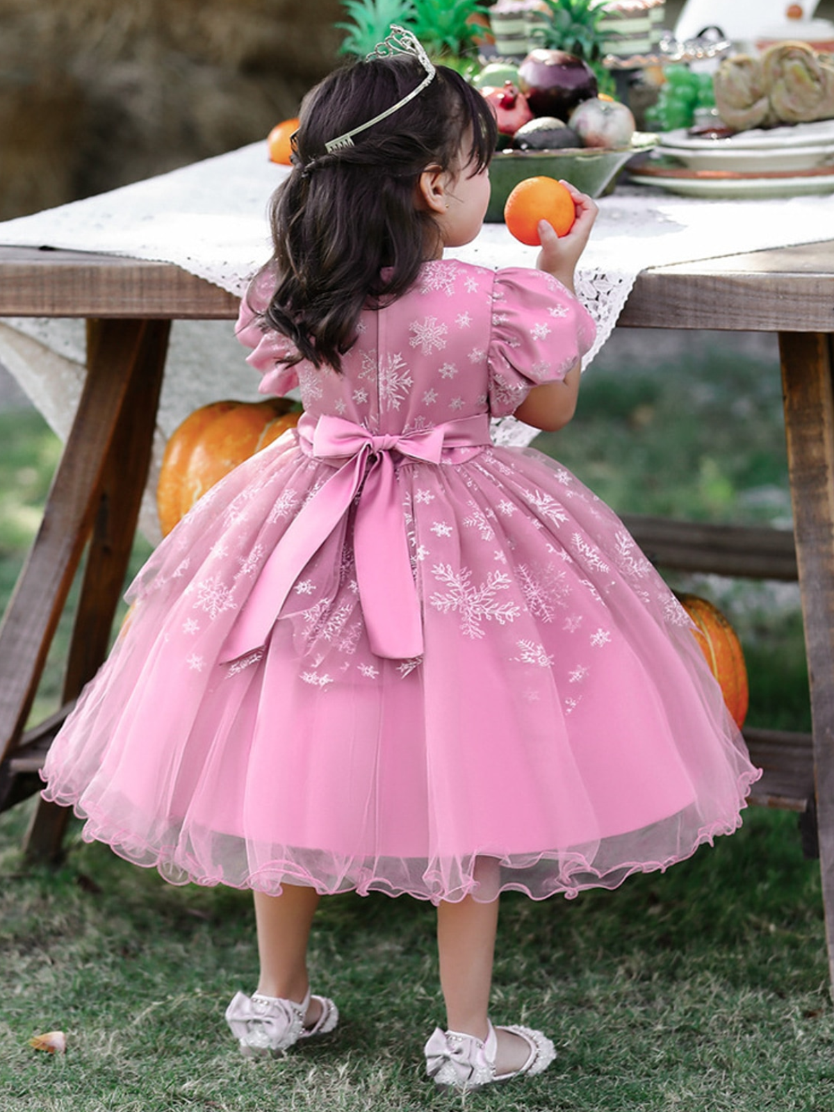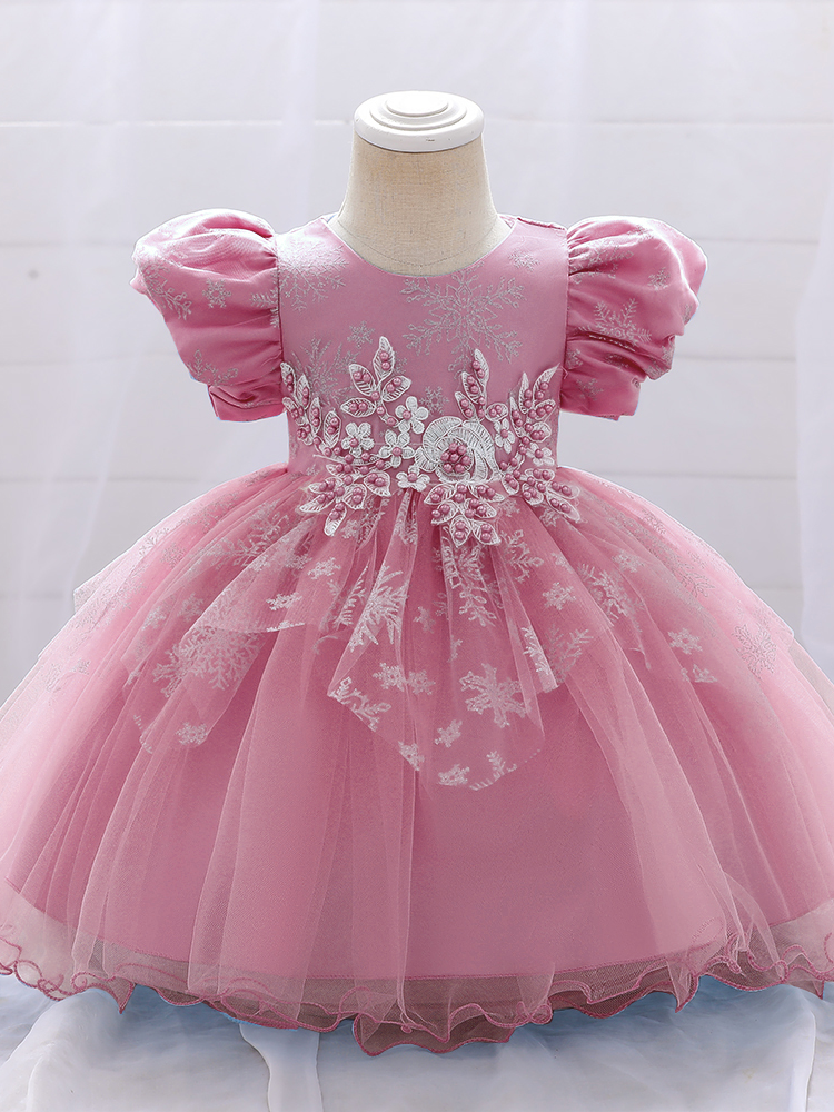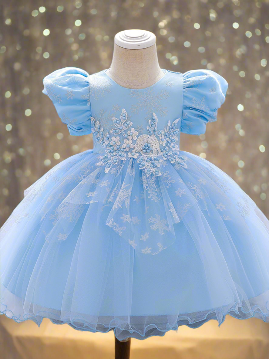- Enchant her world with the lacey, embroidered princess dress of her dreams. The puff sleeves and sparkly snowflakes are straight out of a fairytale. Your little girl will be sure to steal the show no matter where this lovely holiday dress takes her.