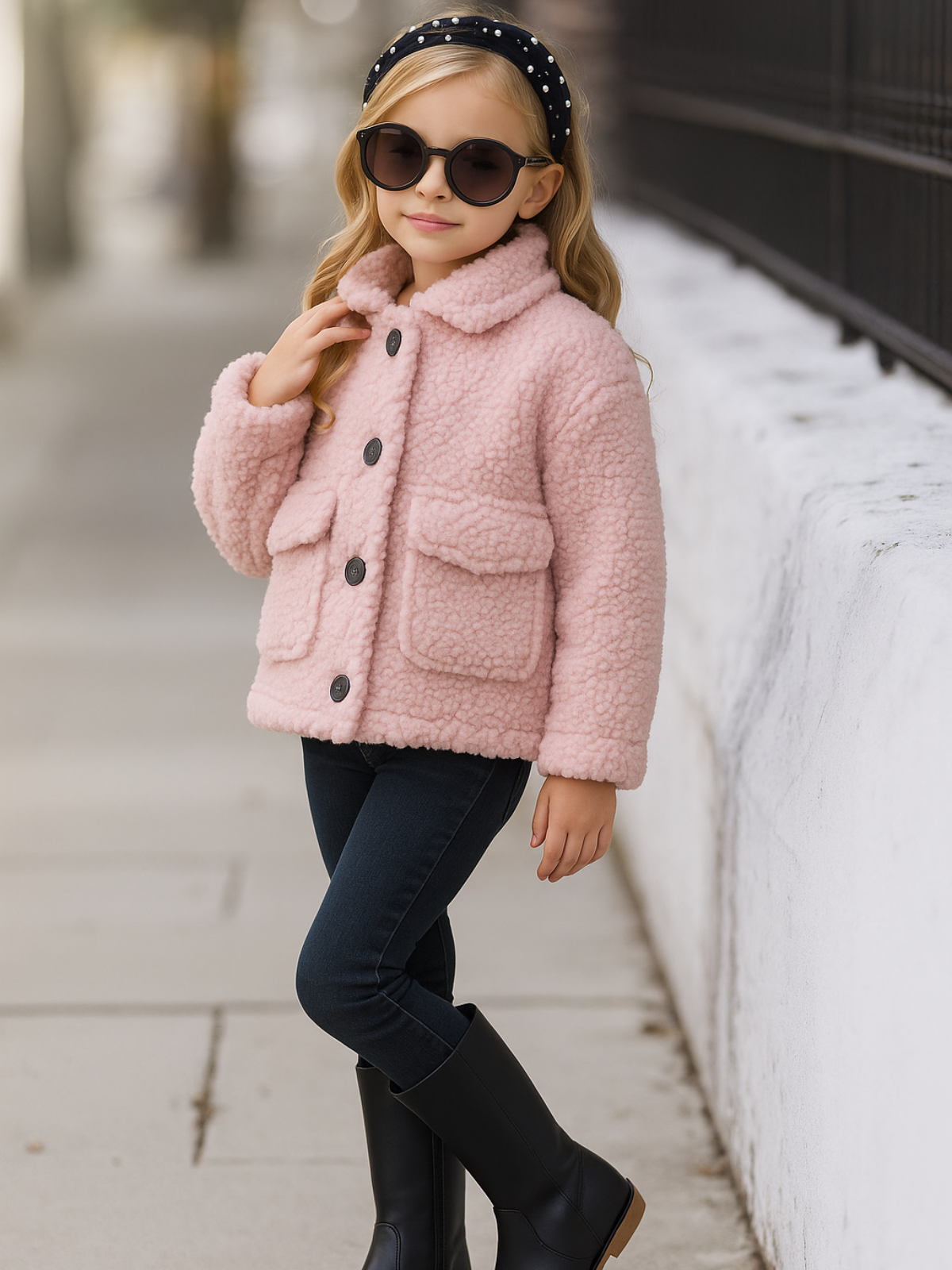- The snuggle is real this back-to-school season with our plush button-down jacket sure to keep your cutie pie warm and cozy when she walks to class or plays outside.
