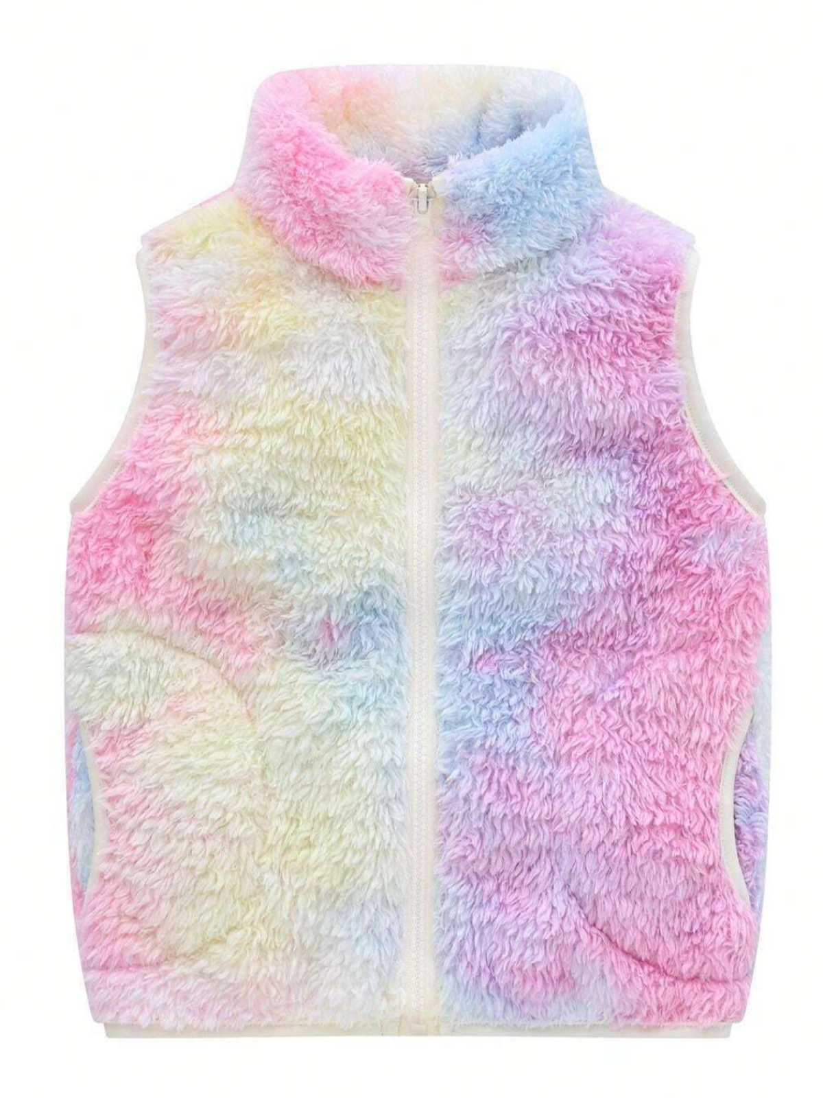 - Features a soft, fluffy Sherpa material in vibrant pastel tie-dye shades, adding a touch of whimsy to any outfit.