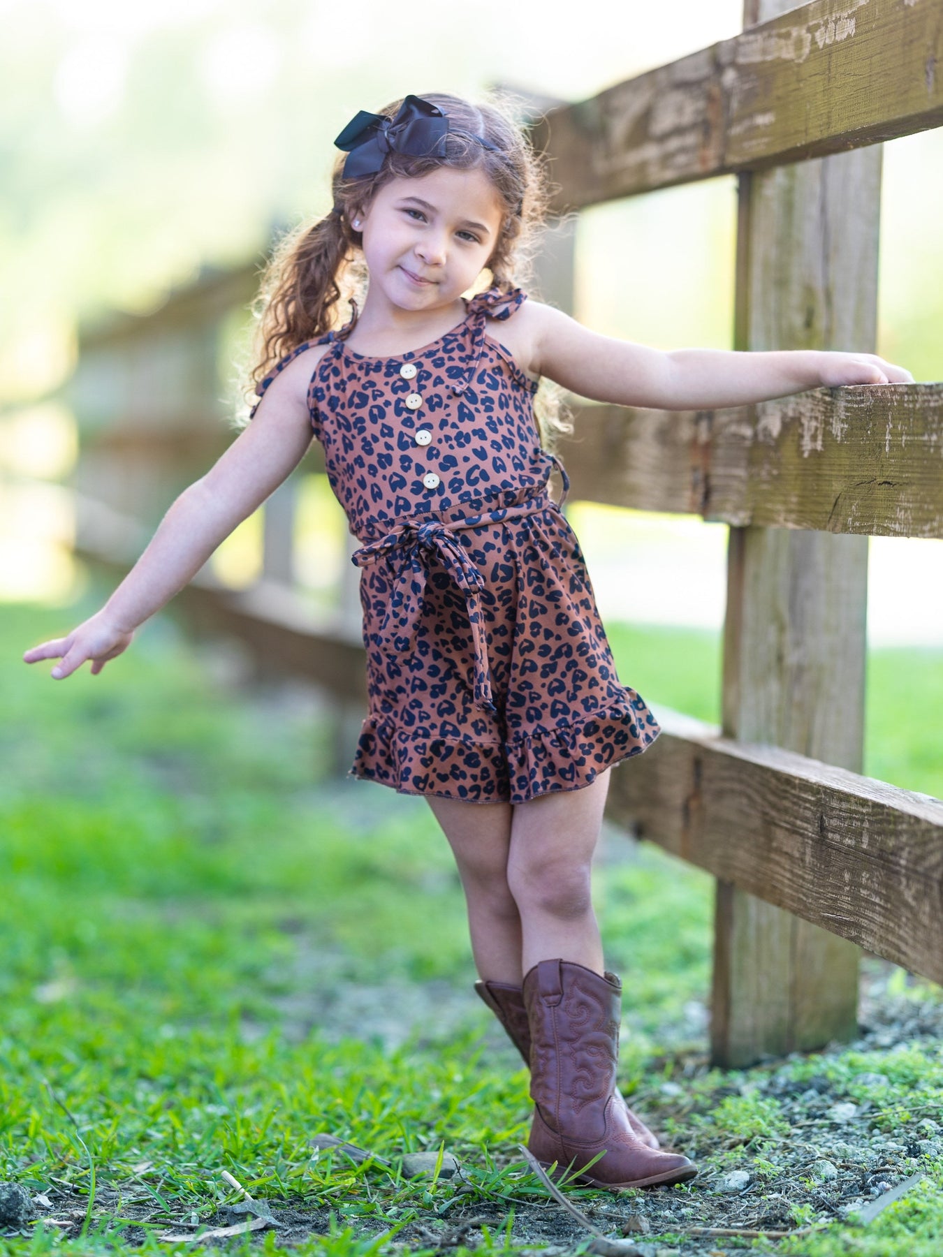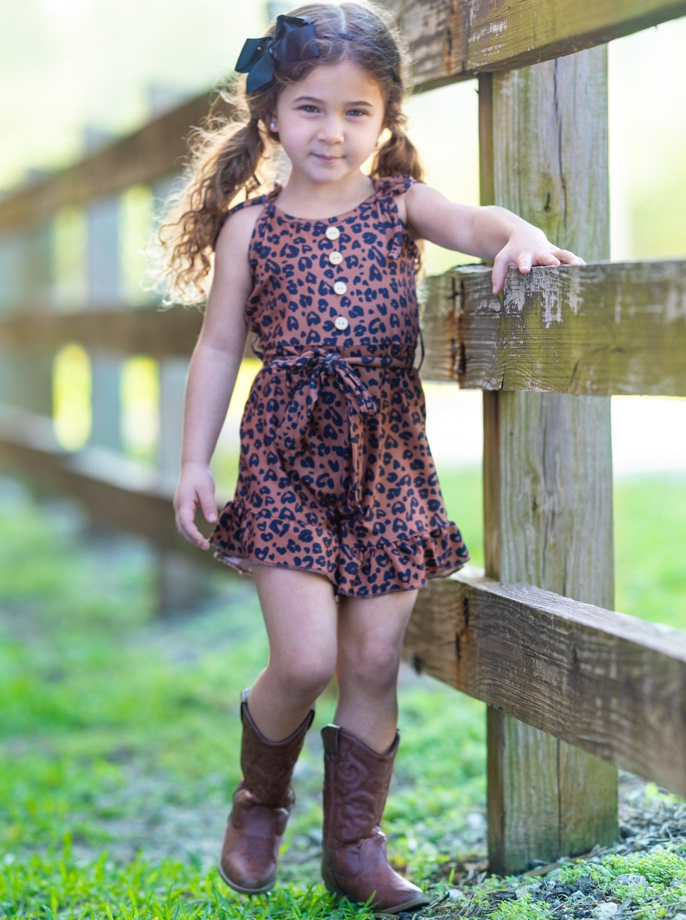 She'll stay cool and look prettily polished in this wildly cute romper featuring a leopard print and built-in sash that will give your girl extra fabulous flair!